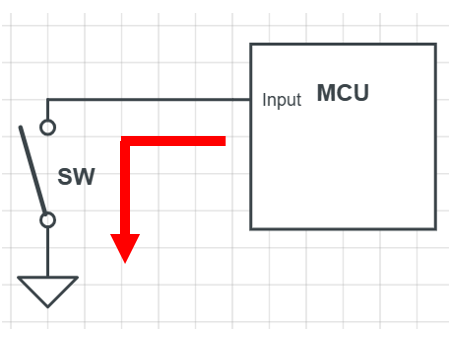 MCU의 Input Pin에 인가되는 신호를 상시는 1, 스위치를 누르면 0 상태로 만들고 싶을 경우 어떻게 해야 할까?
