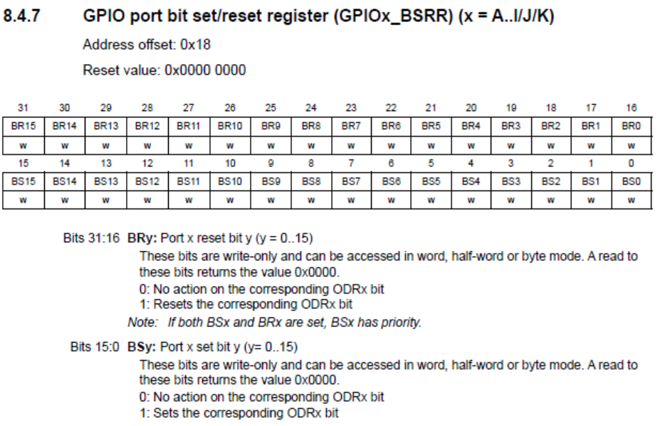 __IO uint32_t BSRR; /*!< GPIO port bit set/reset register, Address offset: 0x18 */