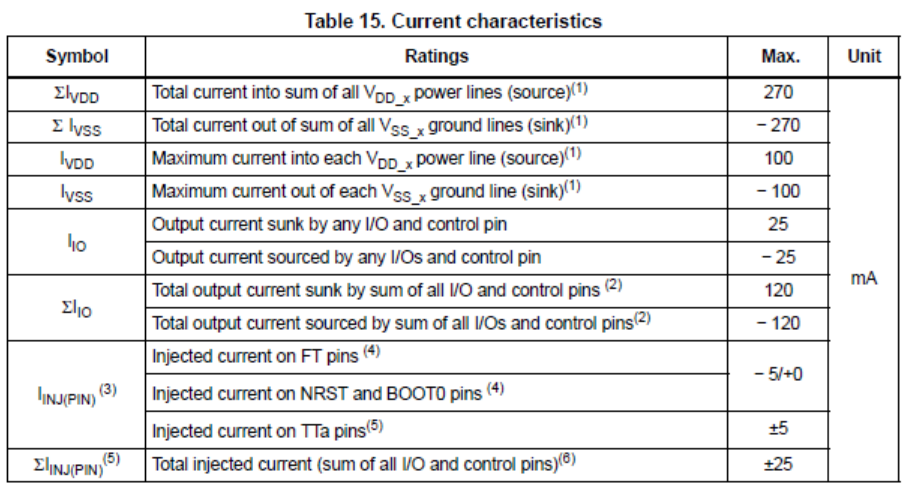 우리가 사용하는 STM32F429/439의 경우 Datasheet를 보면 출력의 총 전류값이 120mA이내 여야 한다.